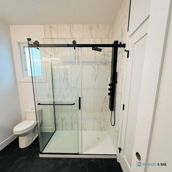 High-Quality Material: 3/8"(10mm) thick tempered safety glass with Tempered Safety Glass Can/Ogsb12.1-m90, for easy cleaning and to resist water spots; Large solid stainless-steel rollers creating a quiet, smooth, and effortless sliding.